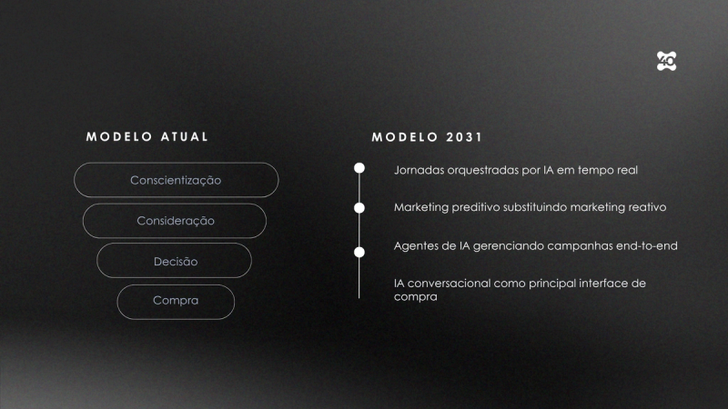 O modelo tradicional de jornada, da conscientização à conversão, pressupõe sequencialidade, mas essa lógica perde validade. A jornada de compra passa a ser dinâmica, adaptativa e preditiva, com sinais comportamentais e contextuais orientando decisões automatizadas de comunicação, oferta e timing.