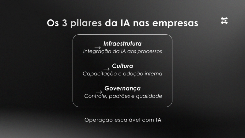 A experiência evidencia que a construção de uma operação orientada por inteligência artificial para negócios depende de três dimensões interdependentes: